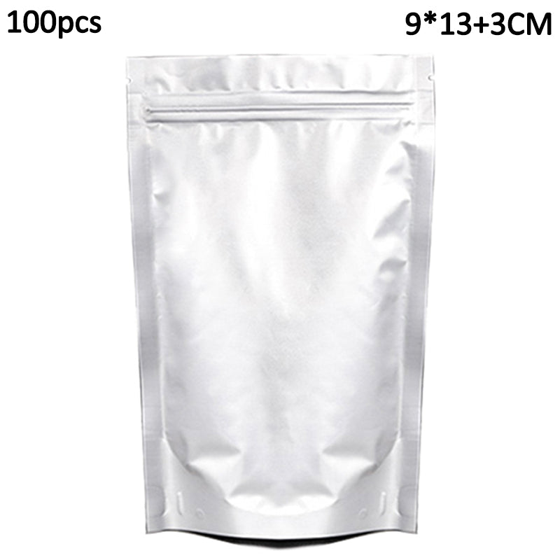 Material Composition: The pouch is made from pure aluminum, PE, and PET, offering a durable structure for storing various products securely