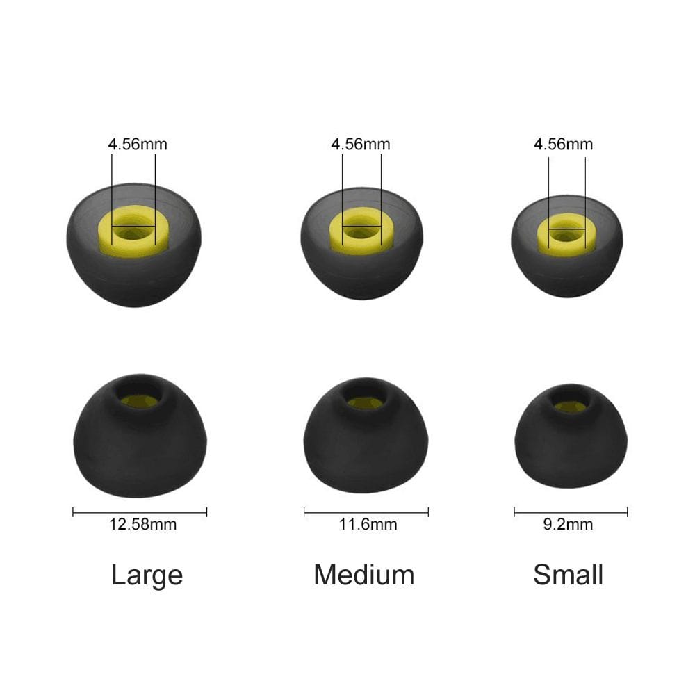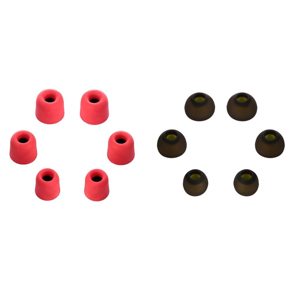 Features:Comfortable Memory Foam: Self-stretch deformation filling with different structures of ears canal space. No need to worry about falling down for the loose and will not produce pain due to inflation.Durable Silicone Earbuds: Thinner silicone earbud edge softer to wear without swelling even after long time use. Non-toxic harmless no smell and no stimulation for human body no allergic reactions.Enhance the Music Effect: Memory foam tips produces the sealing in the ear canal so that music is almost no loss to reverberate in your ear canal. Silicone Earbuds delivers stronger bass sound and more penetrating tenor.Noise Isolation: The sealing made by the earbuds can isolate the external noise interference even in noisy environment without increasing the volume up to over the noise which can protect your ears.Super Compatibility: Suitable for most earphone nozzles from 4mm to 5.5mm. 6pcs S/M/L Memory Foam Ear tips and 6pcs S/M/L Silicone Earbuds can satisfy the needs of different groups of people.Specifications:Brand Name: New BeeMaterial: Foam SiliconeColor: Black (Silicone Earbuds); Red (Memory Foam Tips)Memory Foam Diameter:Large: outer 12.95mm; inner 5.0mmMiddle: outer 12.6mm; inner 5.0mmSmall: outer 10.8mm; inner 5.0mmSilicone Earbuds Diameter:Large: outer 12.58mm; inner 4.56mmMiddle: outer 11.6mm; inner 4.56mmSmall: outer 9.2mm; inner 4.56mmMain Item Weight: 4g / 0.13oz (6 pairs)Package Size: 7.1 * 5.5 * 1.5cm / 2.79 * 2.16 * 0.59inPackage Weight: 23g / 0.80ozPackage List:3 * Pairs of Memory Foam Tips3 * Pairs of Silicone Earbuds1 * Storage Case