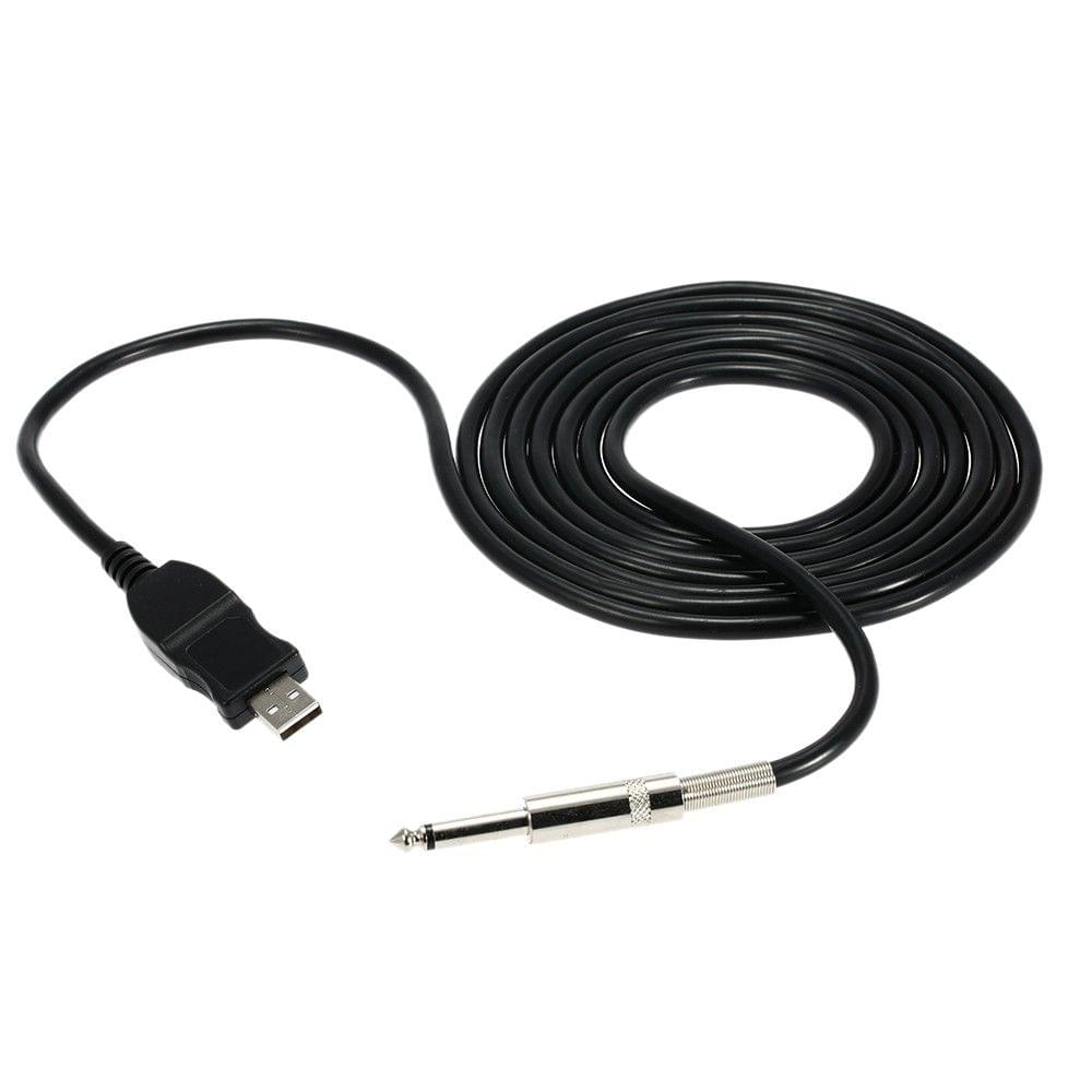 The USB guitar cable in itself owns sound card and can be compatible with computer without additional drivers, Just plug in your instruments or microphones, electronic organ and so on, then you can start recording high quality digital music works easily, no need any additional equipment. Easily to carry. Features: 100% brand new and high quality. Easy Plug and Play Installation. Plug and play. Embedded A/D convert with audio signal boost. High quality professional shielded cable and 1/4'' 6.3mm jack. Simple USB plug and play connection without additional driver. Red indicator light flash indication when signal is being transmitted. Support system: Windows 98/2000/XP/VISTA/Win7/Mac OS X. Compatible with USB2.0 Full Speed Operation. Specifications: Material: ABS Cable Length: About 3m Color: Black Item weight: 154g / 5.42oz Package Weight: 159g / 5.6oz Package Size: 23 * 15.5 * 2cm / 9.05 * 6.10 * 0.78in Package List: 1 * USB Guitar Cable