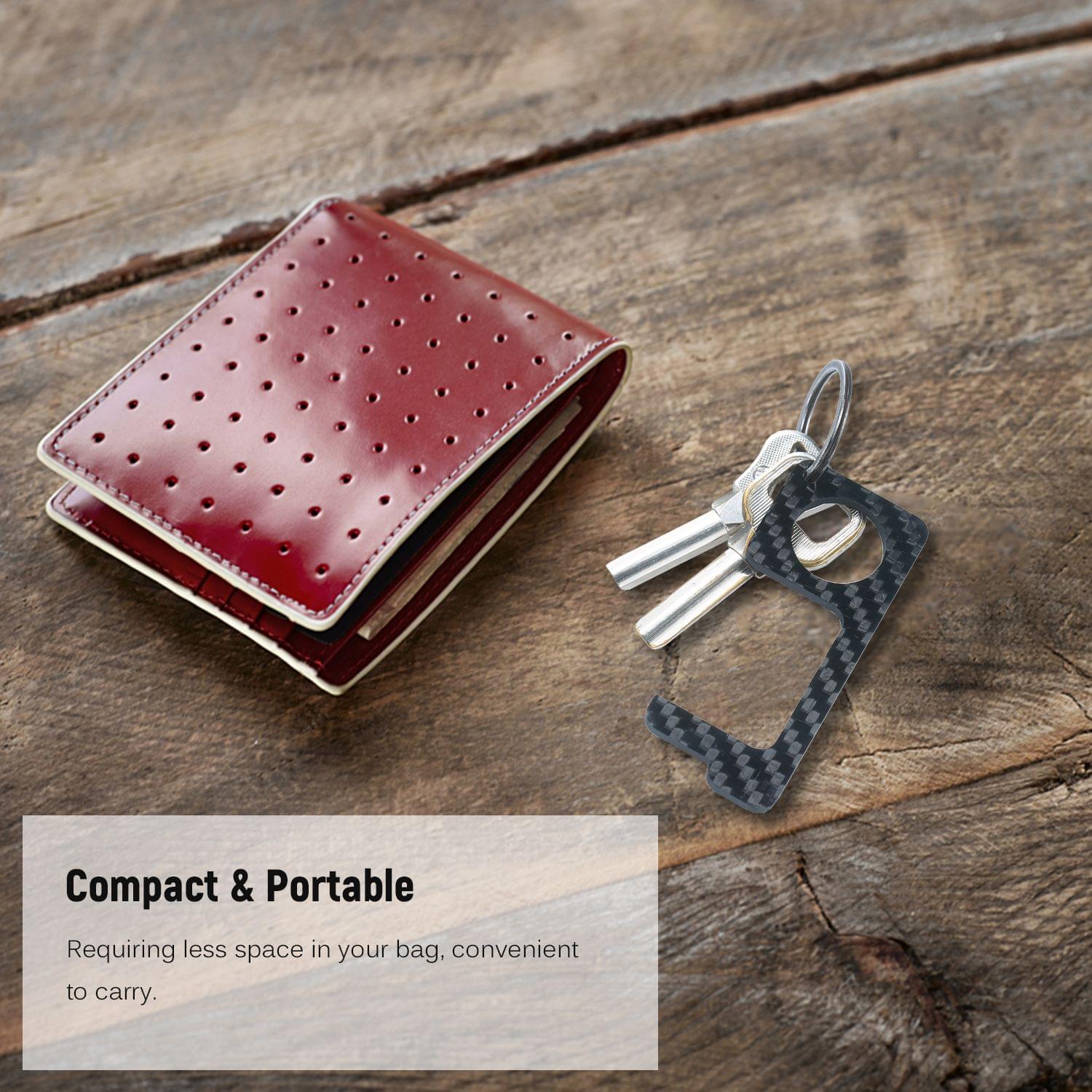 The compact and portable product can help you effectively avoid direct contact with elevator buttons handrails door handles maintaining your personal hygiene.Features:- Compact Portable: Requiring less space in your bag convenient to carry.- Large Keyhole: With the large keyhole this product will nor press your fingers or you can hang it around your neck for easy carrying.- Small Keyhole: Your key chain can be hung with the product more convenient and easy-carrying.- Protection Function: With this product you don't need to contact with objects in public directly which is practical and reliable.- Quality Material: Made of quality carbon fibre comfortable grip and more durable.- Wide Application: Help you not to touch anything directly in public. It is suitable for contacting with elevator buttons door handles drawer handles toilet public equipment etc.Specifications:Shape: Square / Annular (Optional)Material: Carbon Fibre / Brass(Optional)Color: Black / Yellow(Optional)Item Size: Approx.7.2*3.1*0.3cm / 2.83*1.22*0.12inItem Weight: Approx.5g / 0.18ozPackage Size: Approx. 13*9*1cm / 5.12*3.54*0.39inPackage Weight: Approx.9g / 0.32ozPacking List:1 * Press Tool