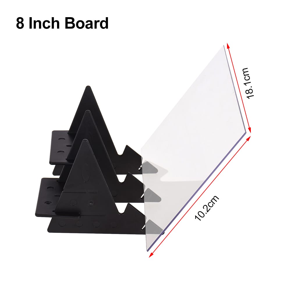 Features:?Principle of Optical Imaging?: The picture can not be projected onto paper through the lens sheet you can see that the picture is imaged on the drawing paper. You can adjust the brightness of your phone or tablet to the desired effect.?No Overlap Shadow?: The lens sheet is made of high quality plastic material good toughness not easy to break. You do not need to print any pictures environmental protection and energy saving. Clear imaging on the transparent board give you a great drawing experience.?Support Phones Tablets?: There are 2 splicing methods for bracket simple and quick to assemble support for most mobile phones and tablets.?APP Download?: You can download APP Pencil Sketch or other relative software to your mobile phone or tablet choose your favorite pictures and convert it to a sketch and then you can start to paint.(Make sure to mirror the image on your mobile phone or tablet before drawing otherwise you will find that the picture is drawn in the opposite direction.)?Zero-based Painting?: Suitable for children kids students adults beginners anime enthusiasts amateurs. You can paint on paper clothes bags and so on.Specifications:Color: TransparentMaterial: PlasticUser Manual: It has Chinese/French/Spanish/English/German/Italian/JapaneseBoard Size: 18.1 * 10.2cm / 15.0 * 10.2cm(Optional)Package Size: 23.0 * 15.0 * 1.5cm / 9.1 * 5.9 * 0.6inPackage Weight: 120g / 4.2oz (18.1 * 10.2cm) 116g / 4.1oz (15.0 * 10.2cm)Notes:Make sure to mirror the image on your mobile phone or tablet before drawing otherwise you will find that the picture is drawn in the opposite direction.Green film can be removed before use do not tear the protective film on the other side otherwise the projection effect will be affected.That side of green film face to mobile phone otherwise the image will show overlap.Package List:1 * Lens Sheet5 * Bracket Parts1 * User Manual(7 Languages)