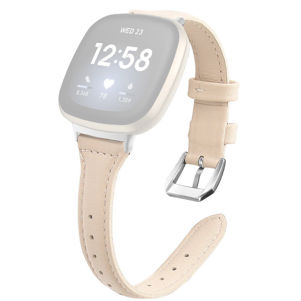 T-Shaped Genuine Leather Watch Band Replacement for Fitbit Versa 3 - Beige