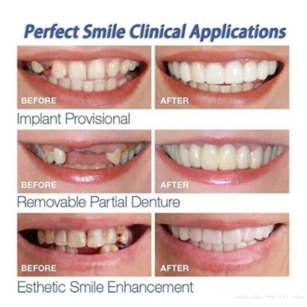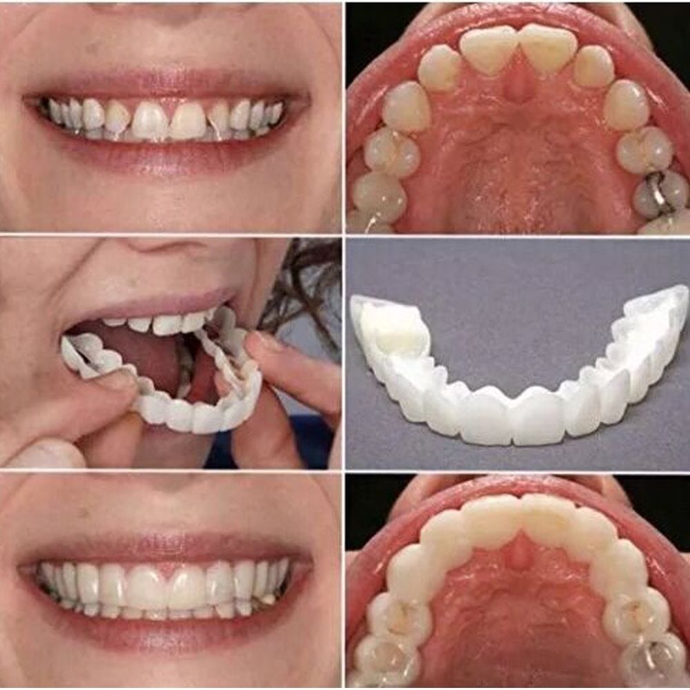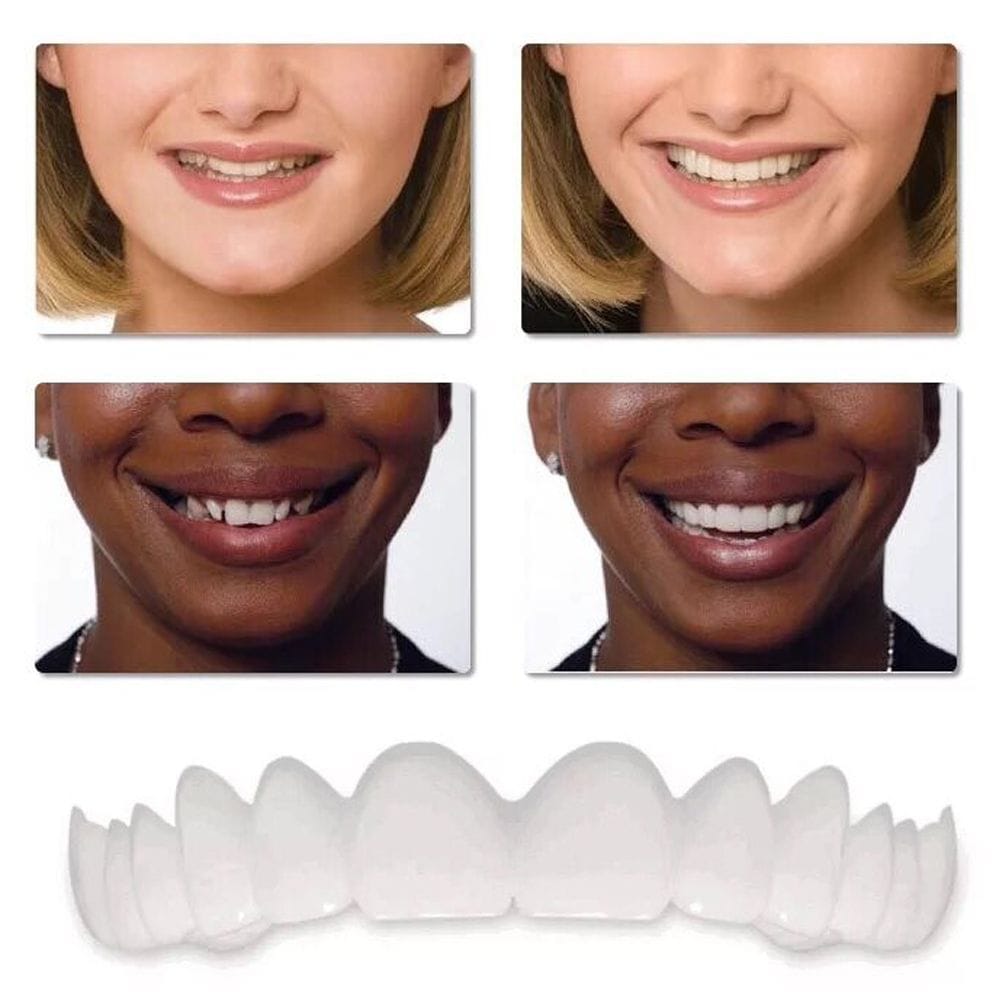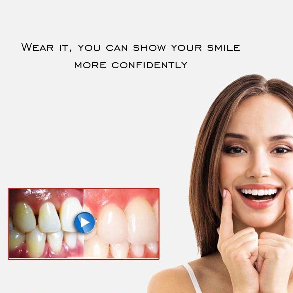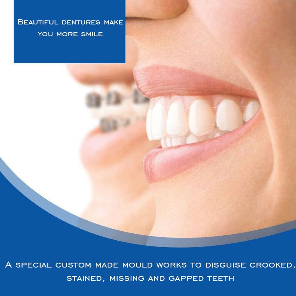 If your teeth exists flaw which is crooked stained missing and gapped the teeth top cosmetic veneer can make your teeth perfect. Wear it you can show your smile more confidently.Features:A special custom made mould works to disguise crooked stained missing and gapped teeth.It's a great alternative to expensive braces.Beautiful dentures make you more smile.Achieve the smile of your dreams with a snap-on smile from white smile.Fits over your upper teeth easy to use comfortable to wear.Specifications:Material: Silica GelItem size (about): 70 * 6mm / 2.76 * 0.24inItem weight: 5g / 0.18oncePackage size: 100 * 100 * 50mm / 3.94 * 3.94 * 1.97inPackage weight: 36g / 1.3ouncePackage List:1 * Teeth Top Cosmetic Veneer