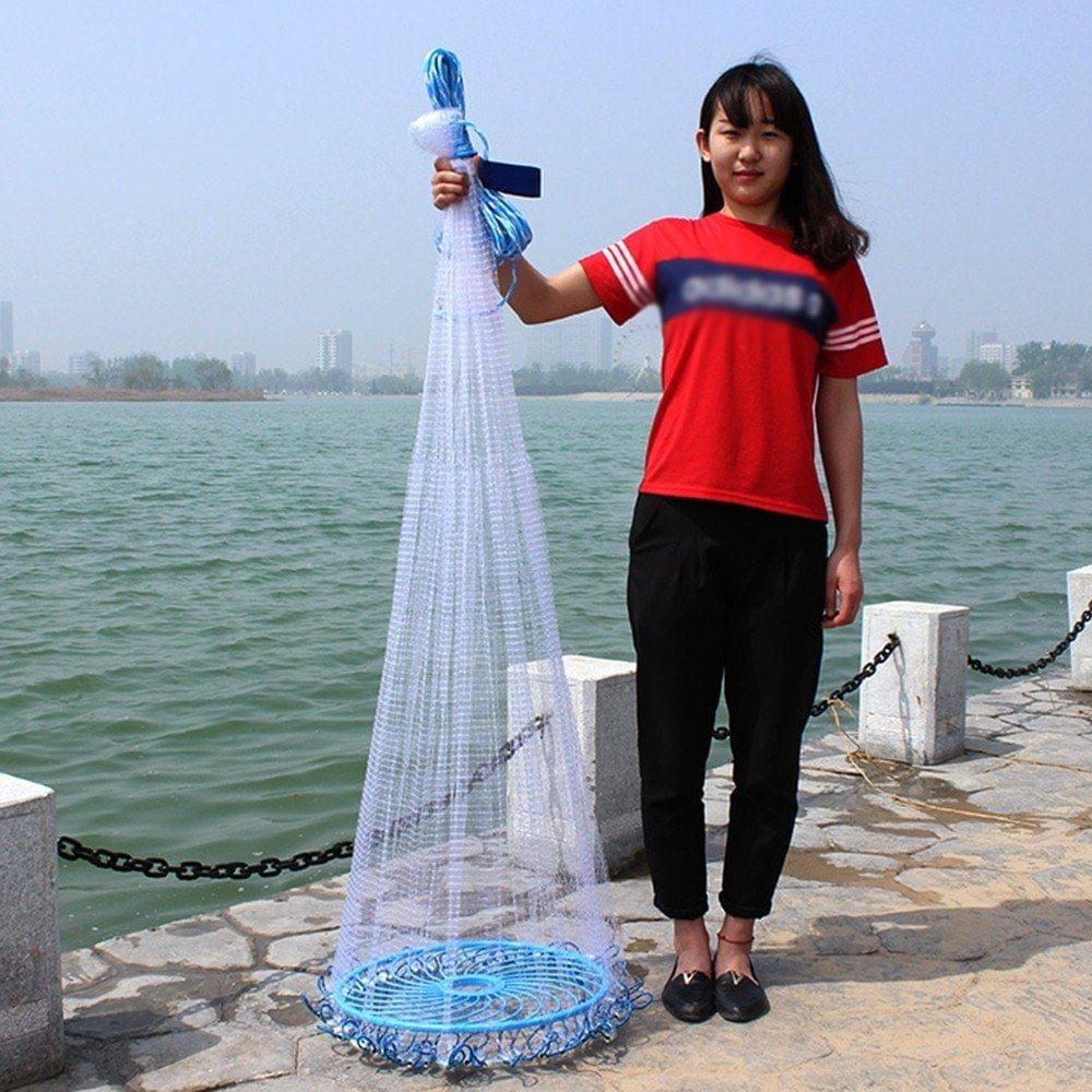 description":"Great tool for home using. Make your home much more convenient and cozy. Feature: Easy to use, convenient. Upgrade perforation lead sinkers design,Reduce the Water flower and quickly into the water. The nets are easy to throw for distance and accuracy, yet sink quickly to ensure a good haul. Various line length for choice. Provides quick sink and a tight bottom seal to avert bait escape. Specifications: Item color: blue&white Item size: 240cm, 300cm, 360cm, 420cm, 480cm, 540cm, 600cm, 660cm, 720cm (optional) Package size: 400 * 300 * 100 mm Package weight: 2000 g Package list: 1 * Fishing net
