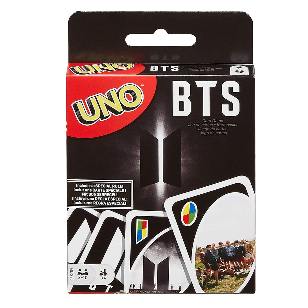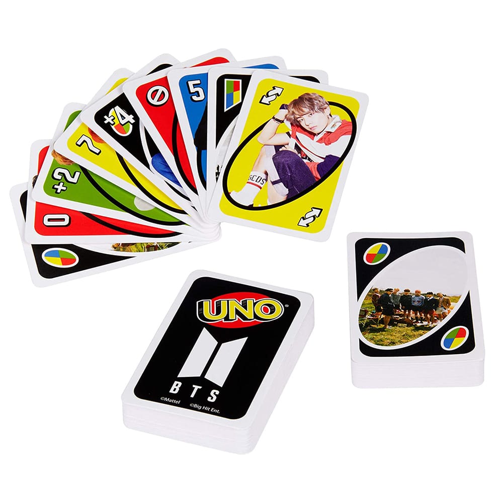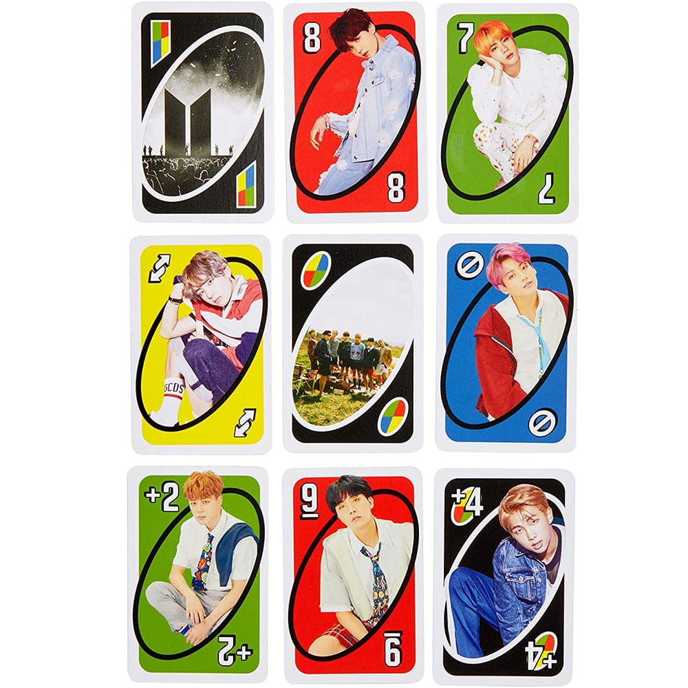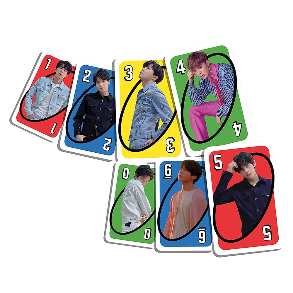 The U-NO card game of B-TS theme combines classic card game with dance together. It is funny for family and friends to p-lay suitable for 2 to 10 players ages 7 and older. When you're down to one card don't forget to yell U-NO!Features:The classic matching card game with an irresistible B-TS theme.Each card in this colorful U-NO B-TS card has a photo of a fan favorite K-pop team member.Like the classic U-no game m-atch cards by color or number to reduce the cards in your hands.Use the Dancing Wild card the n-ext player m-ust perform a B-TS dance or draw three cards.When you're down to one card don't forget to yell U-NO!Ideal gift for children over 7 years old.Specifications:Material: PaperItem Size: 87 * 57mm / 3.43 * 2.24inPackage Weight: 160g / 5.64ouncesPackage Size: 130 * 80 * 20mm / 5.12 * 3.15 * 0.79inPacking List:112 * Card1 * User Manual