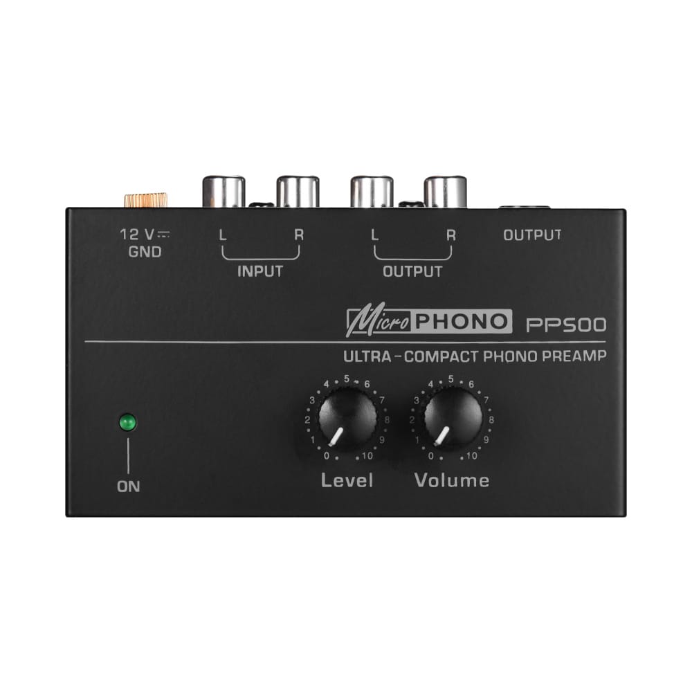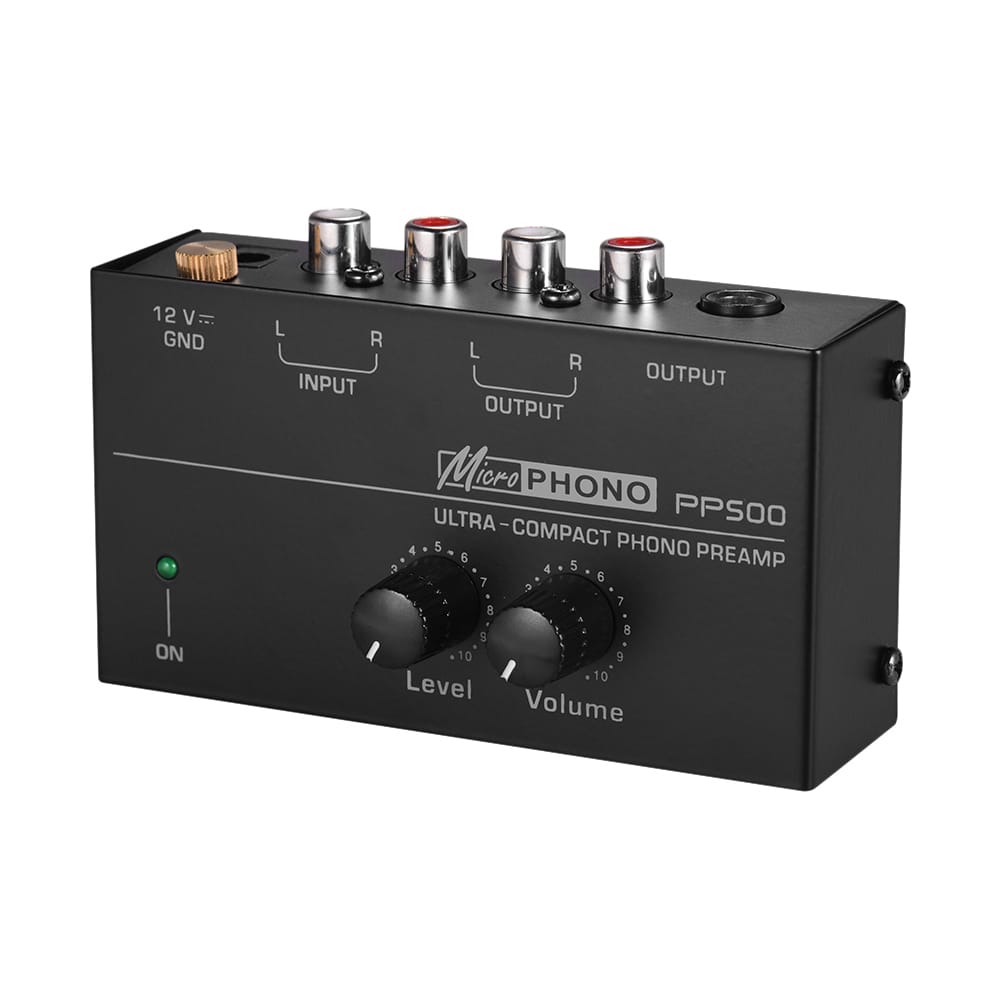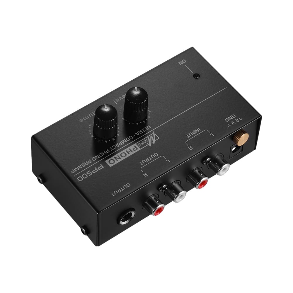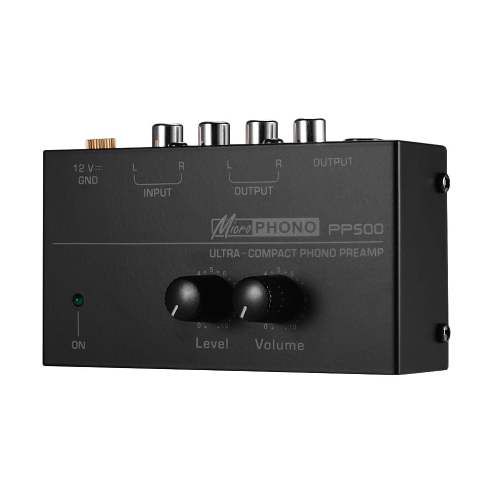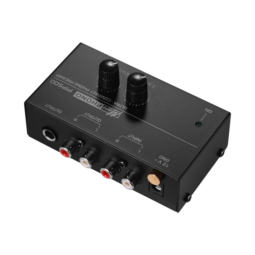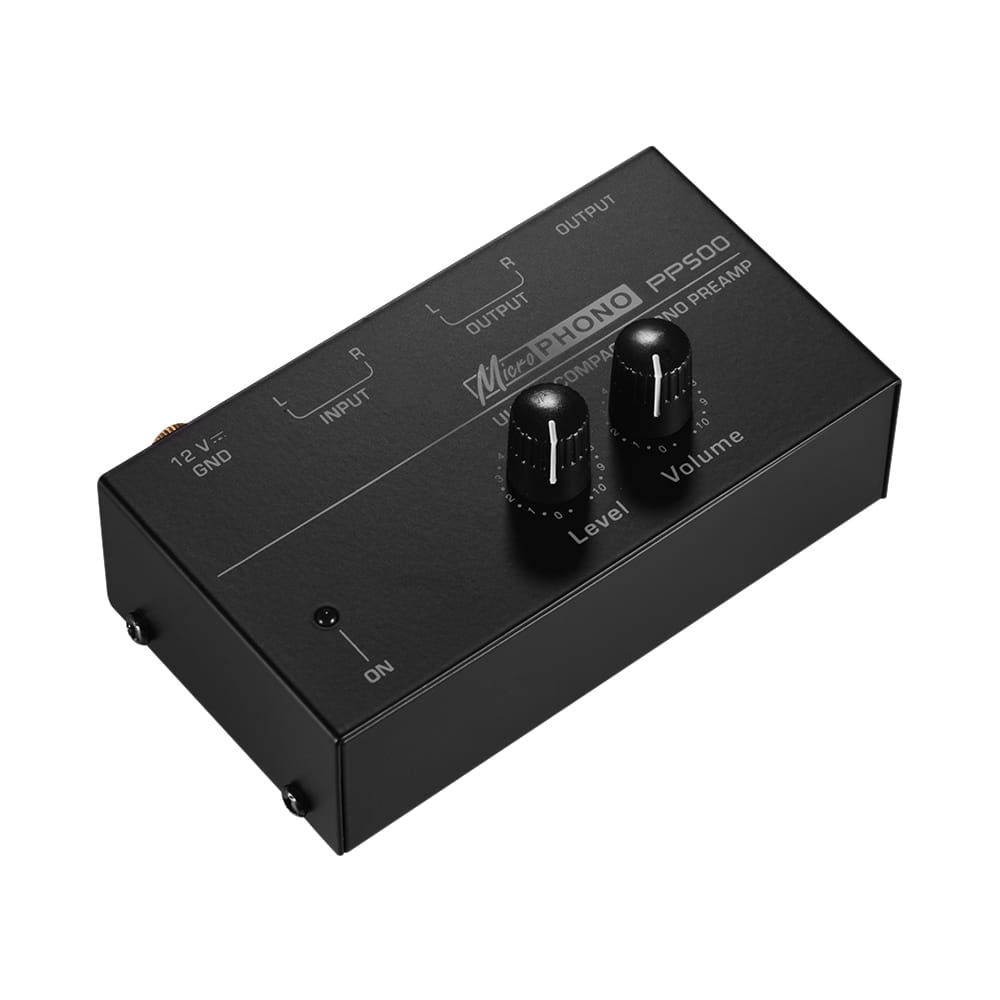 Features:Ultra-compact phono preamp with metal shell portable and durable.2 * RCA(L R) inputs 2 * RCA(L R) outputs 1 * 1/4 TRS output multiple connection choices.With level and volume control knobs.For converting the phono signal to a line level signal.Ultra low-noise audio performance offers excellent sound quality.Specifications:Color: BlackMaterial: MetalConnector: RCA 1/4 TRSPower Supply: DC 12VPower Adapter: US/ EU plug(optional) input--110-240V 50/60Hz output--12V 500mAItem Size: 10.3 * 5.7 * 3cm / 4.1 * 2.2 * 1.2inItem Weight: 177g / 6.2ozPackage Size: 22.5 * 13.5 * 8.5cm / 8.9 * 5.3 * 3.3inPackage Weight: 372g / 13.1ozPackage List:1 * Phono Preamp1 * Power Adapter