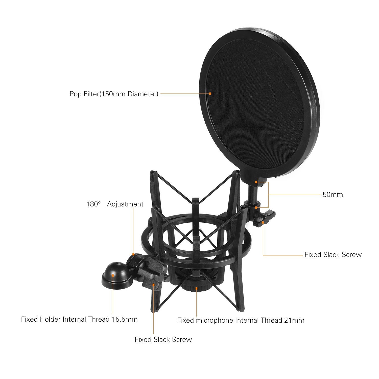 The pop filter with double layers mesh screen can reduce reduce vocal popping and sibilance effectively to ensure better recording sound quality.