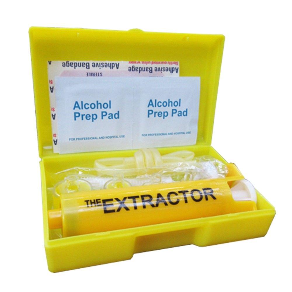 description":"The Venom Extractor Kit is a good equipment in emergency situations. Features: Effective retrieval of venom from body parts outside the limbs and muscle areas. 4 sizes of plastic cups for use and effective suction on a variety of sting or bite sizes. Compact and highly portable. It comes in a hard-shell case. Suitable for emergency treatment of snakes, bees,wasps,spiders, scorpions and cockroaches etc. Specification: Material: ABS,PP Extractor pump size: 12*4.7cm/4.7*1.9in Package size: 13*9*5cm/5.2*3.5*2in Package weight: Approx. 90g/3.2oz Package List: 1* Extractor pump 4* Suction cups 2* Alcohol prep pads 2* Adhesive Plaster 1* Tourniquet 1* Shaver 1* Storage case